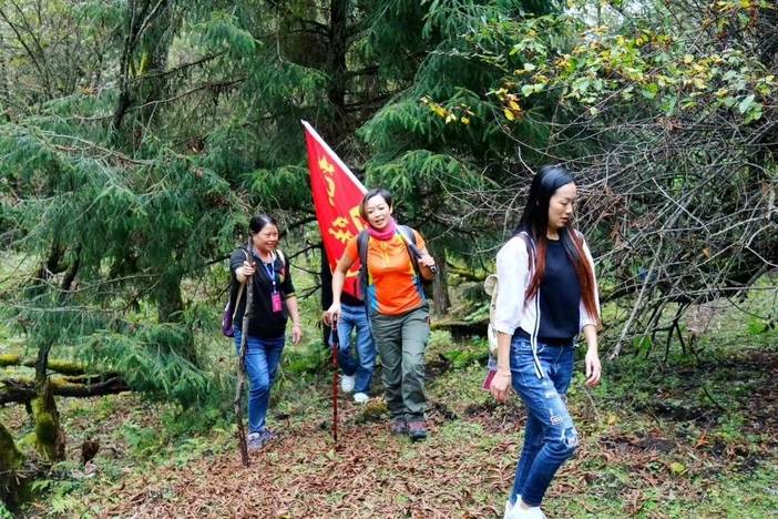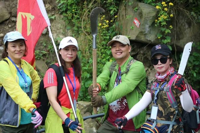 行走经验:走灌木丛要带上眼镜、帽子、拉上冲锋衣的拉锁,队员之间至少要保持1.5米的距离,防止前面的队友带倒的树枝反弹回来伤到自己。时刻提醒后面的队友注意距离过远容易迷路!