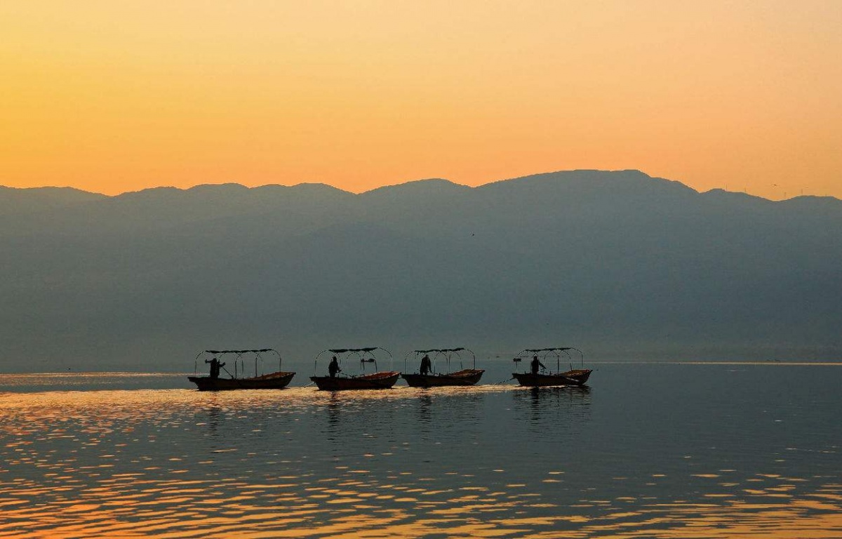 邛海如同我国一些高原湖景一样,以恬静著称,景色四季各异,春日天光水钯,上下一碧,一片浩翰波光闪耀在苍山碧野之中,“舟行碧波上,人在画中游”,岸边柳眉桃腮,燕语呢喃。