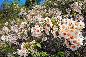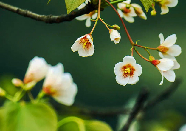 4月初正是油桐花的盛花期,油桐花开了,山垸美景又跃动眼前。一朵朵,一簇簇,一片片地开着,山坡,沟壑,路边,田野,峡谷,溪畔,满山遍野地开着,像等候太久的期待瞬间眼前展现。