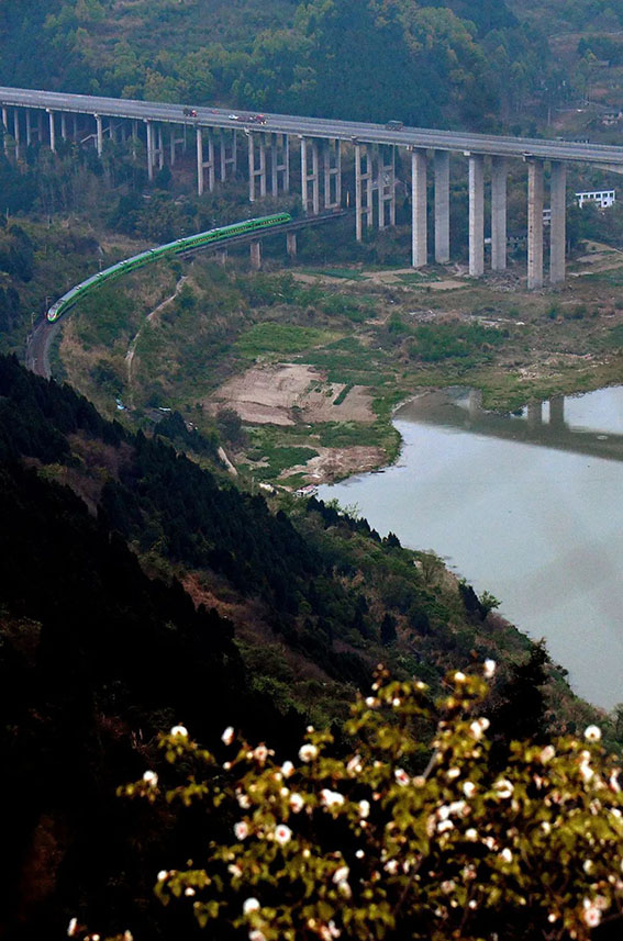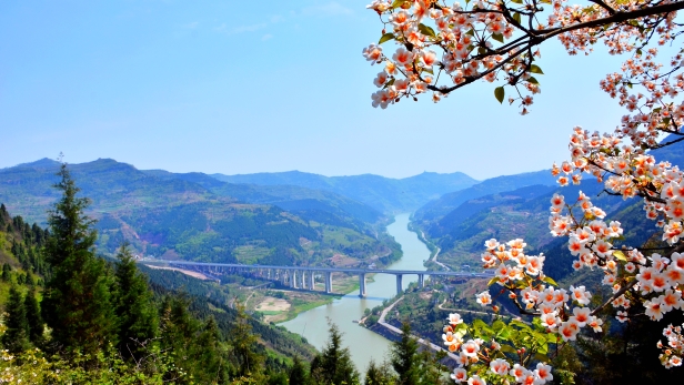 平常缺少锻炼者容易急促喘气,陡坡尽头就是网红油桐花观赏地,这里有沱江小山峡和沱江特大公路桥做背景,如果遇上蓝天白云的好天气,则容易拍出大片。